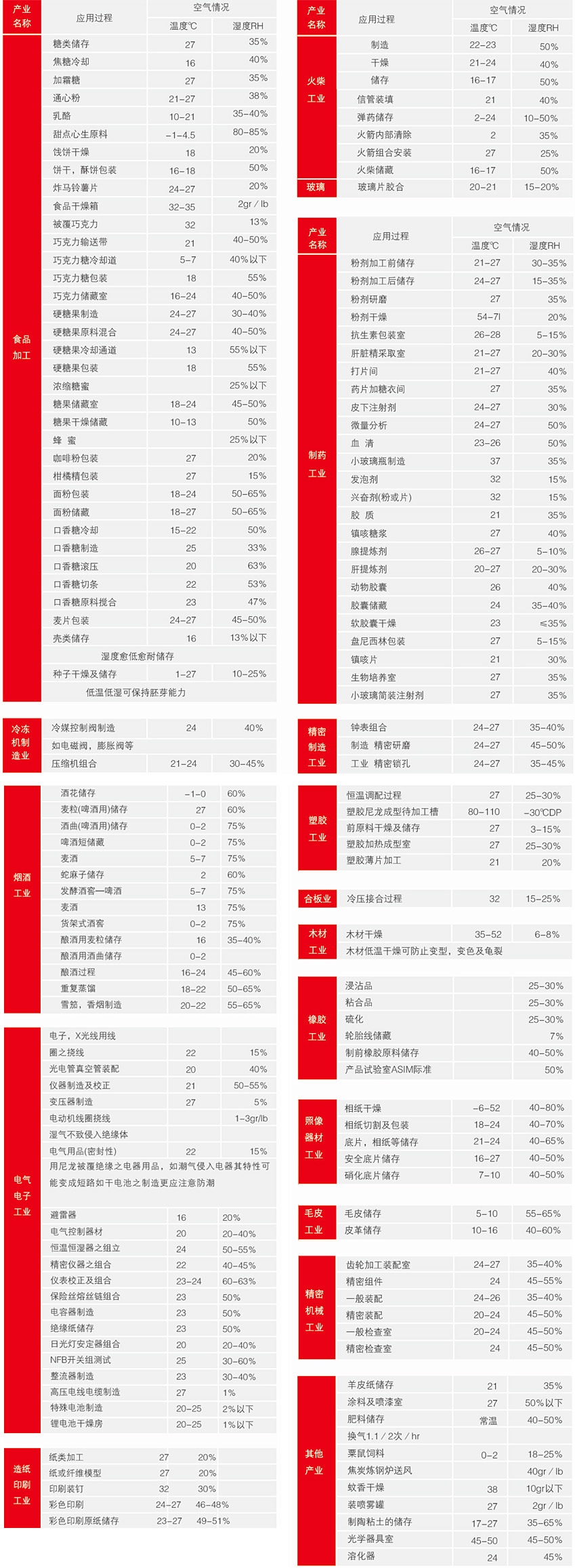 各種行業需要的溫濕度